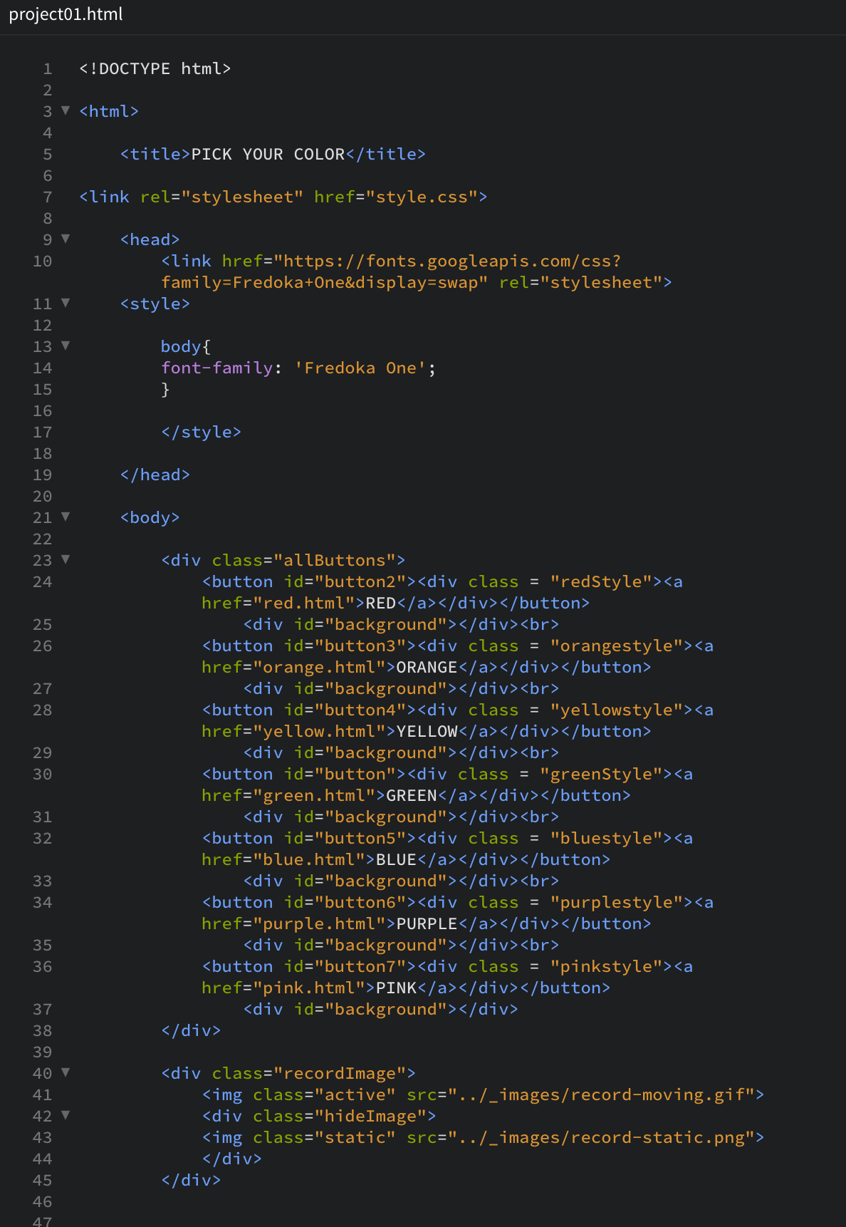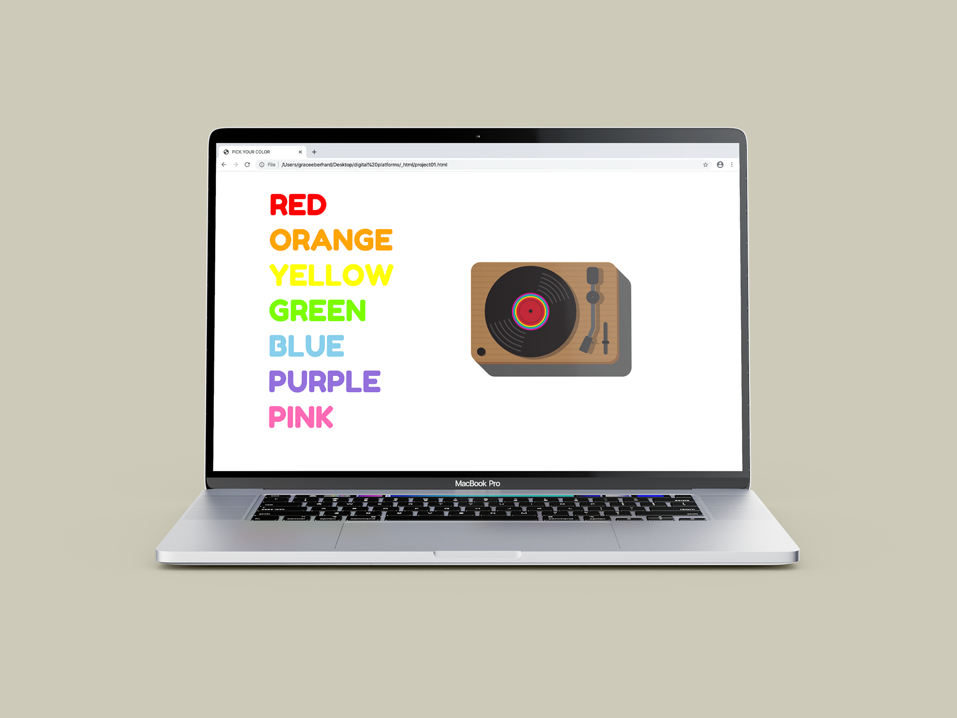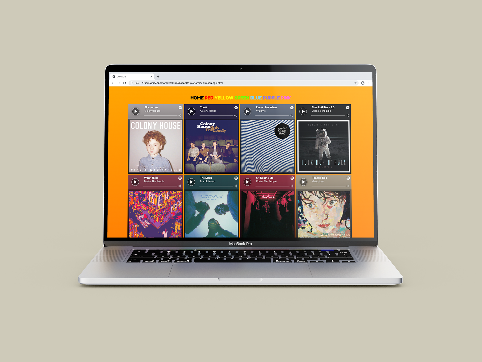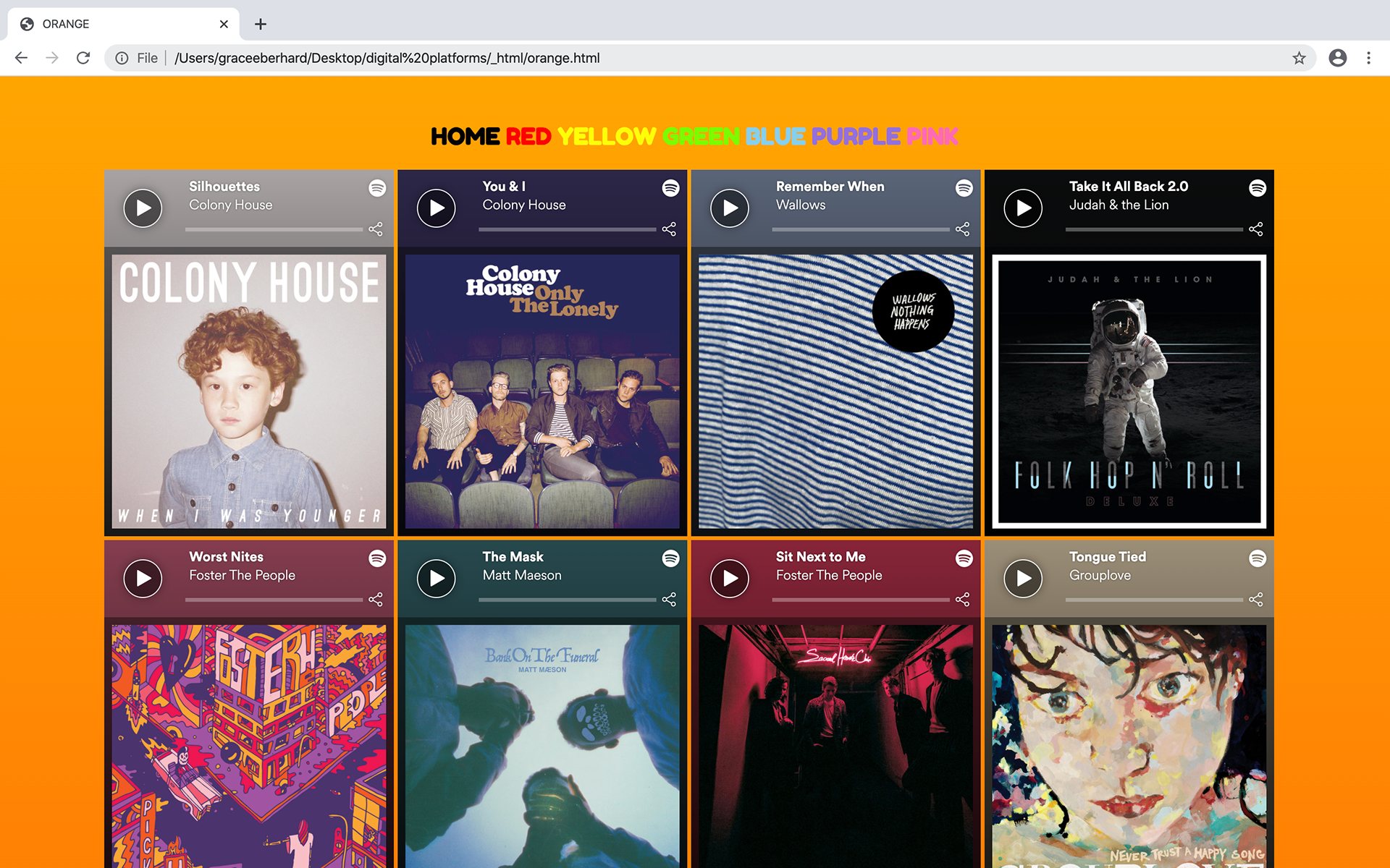 A locally hosted site that was developed using html. The site is created to give the user music recommendations using the color the choose on the website's home page. Below is images of the site along with sample code used to develop the site.